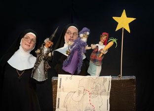 Ohjemine! Schwester Theodora und Schwester Elisabeth haben aus Versehen den Koffer mit den Kasperpuppen mitgenommen! Und die Krippenfiguren sind im Kloster geblieben. Nun können die frommen Nonnen die Geschichte von Jesu Geburt gar nicht spielen.